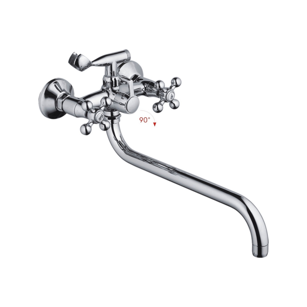 Смеситель для ванны и раковины 1/2 кер CN2619-2 CRON труб. излив 350мм, с душ. аксессуарами ХРОМ