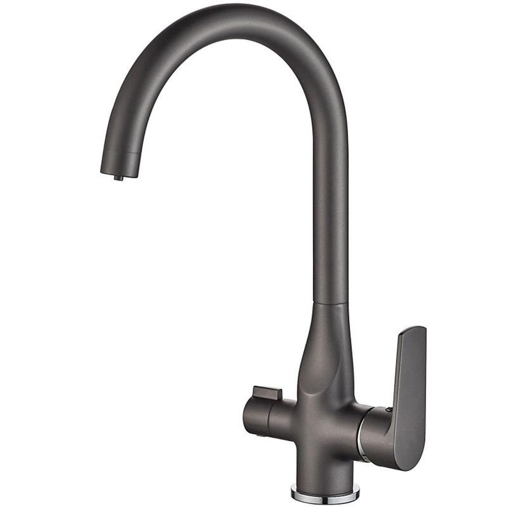 Смеситель для кухни 35к HB76533-3 HAIBA с вых. для питьевого фильтра б/отв п/гайку оружейная сталь