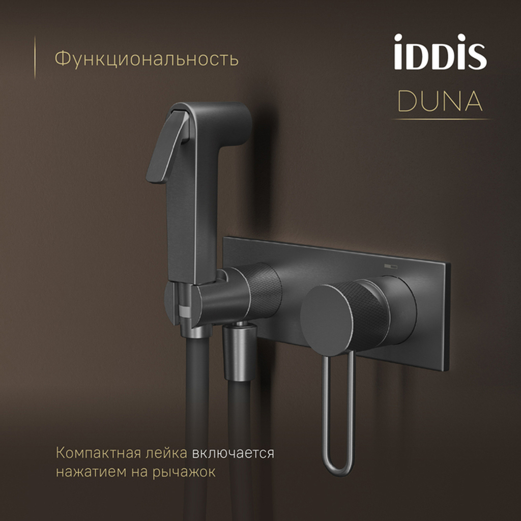 Смеситель с гигиенической лейкой 35к IDDIS DUNGMV0i08 "Duna" встраиваемый, ГРАФИТ мат.