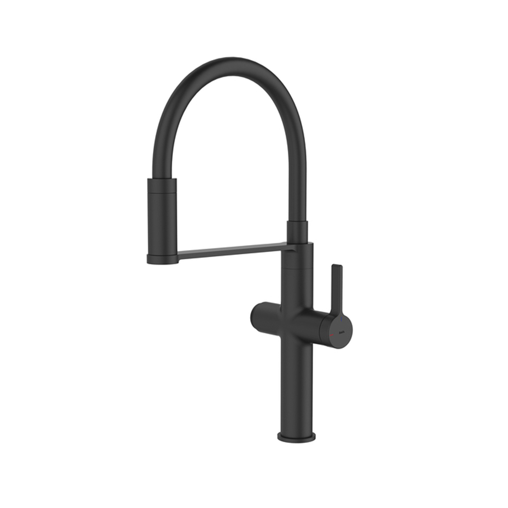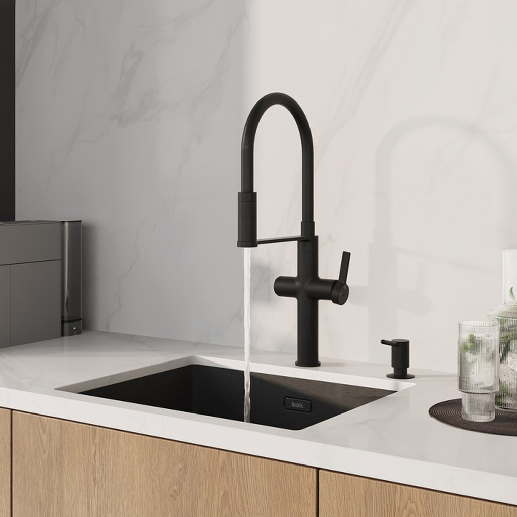 Профессиональный смеситель для кухни Ikon в чёрном цвете с гибким изливом и отдельным каналом для фильтрованной воды. Современный, продуманный и функциональный, он успешно справляется с повседневными задачами на кухне. Гибкий излив позволяет направить струю воды в нужную точку. Излив фиксируется магнитным замком за одну секунду.Встроенный канал для фильтрованной воды – можно наслаждаться чистой питьевой водой прямо из-под крана. Удобное переключение одним нажатием кнопки. Фильтр в комплекте не идёт и приобретается отдельно.