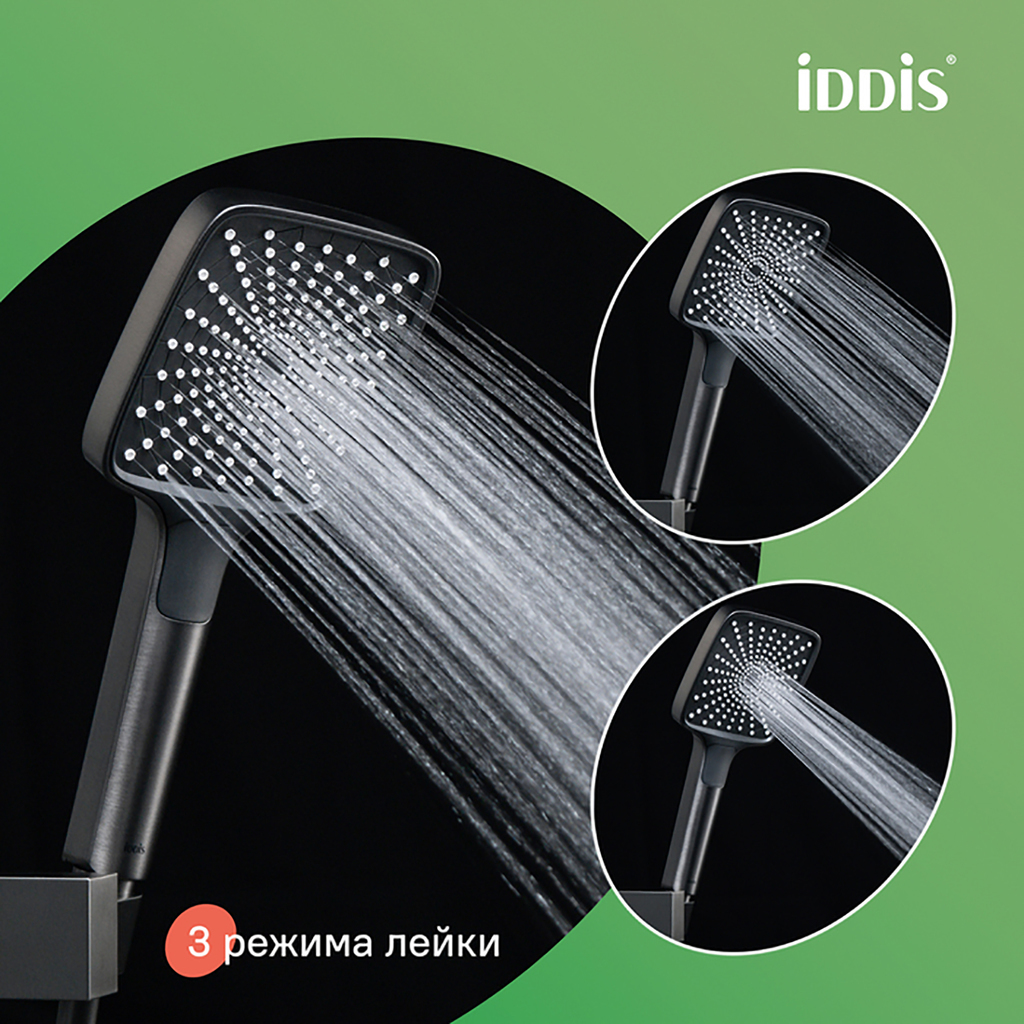 Душевая система 35к IDDIS PARGM3Fi06 "Parker" лейка "Тропический душ" ГРАФИТ матовый