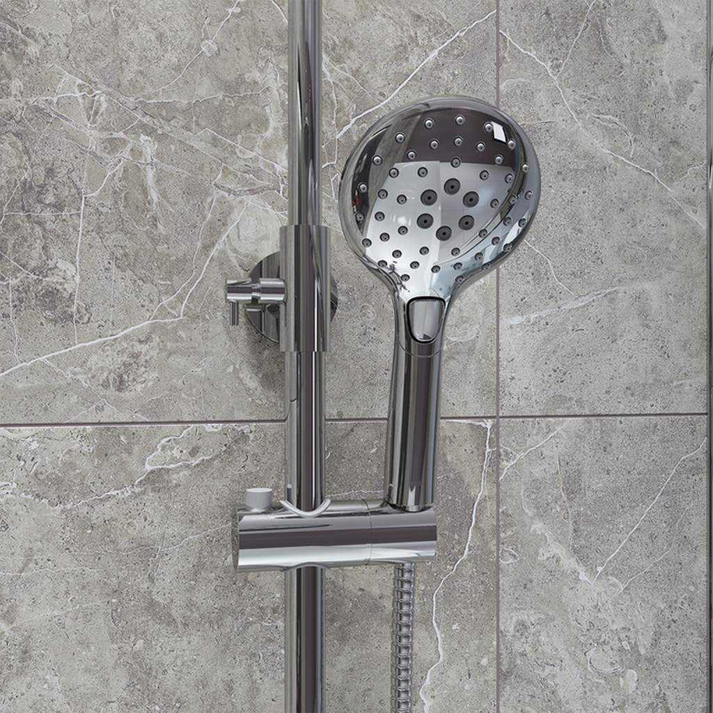 Смеситель с верхним душем IDDIS RAYBL3Fi06 "Ray" в цвете хром - привлекательное, современное и практичное решение, которое будет органично сочетаться с любым дизайном ванной.Керамический дивертор надежно и плавно переключает поток воды на верхнюю душевую лейку, трехрежимную ручную лейку или обеспечивает одновременную работу сразу двух душевых аксессуаров (комбинированный режим).