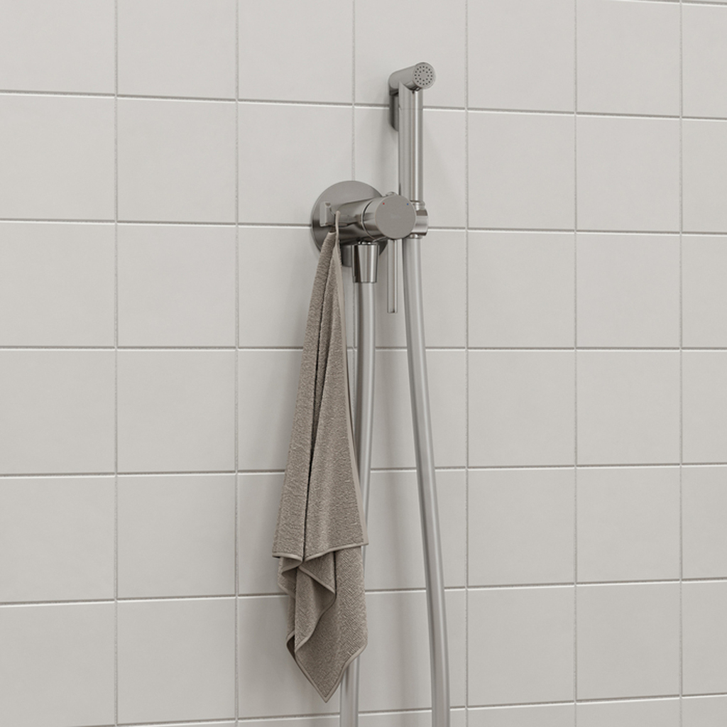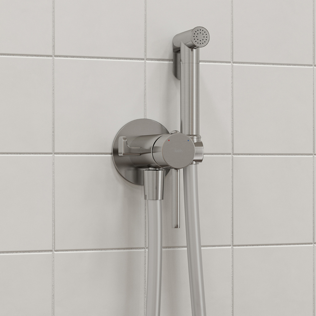 Встраиваемый смеситель с гигиеническим душем Axes в стильном оттенке матового хрома – практичный и стильный, его дизайн сочетает в себе трендовый минимализм форм и четкие грани. Имеет крючок для полотенца, который можно установить как слева, так и справа. Гладкий душевой шланг 1,2 м в комплекте. Гигиеническая лейка очень компактная, но при этом она комфортно и уверенно ощущается в любой руке – благодаря тому, что изготовлена из увесистой латуни. Экономит пространство и упрощает уборку — благодаря скрытому монтажу в стену (на глубину 40–60 мм) и отсутствию больших выступающих элементов конструкции. Подключается с помощью любых труб, диаметр входных отверстий дюйма. Смеситель прослужит долго благодаря надежному корпусу из прочной латуни, стойкому к коррозии, резким изменениям давления и перепадам температуры воды. Плавный ход ручки и абсолютная точность регулировки температуры и напора воды — за счет качественного керамического картриджа Softap. Гарантия на смесители IDDIS® – 10 лет, на лейку и шланг – 3 года.Сертификаты, декларации и паспорта товаров TIM