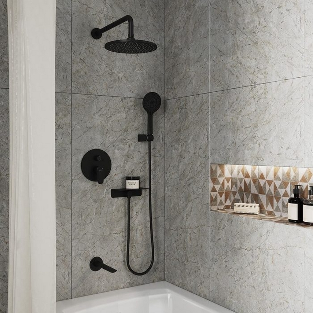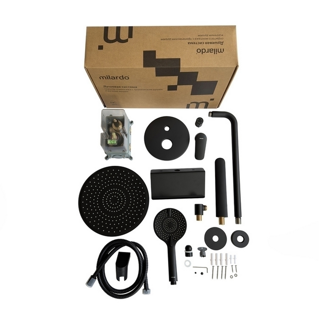Душевая система 35к Milardo RORBL03M68 "Rora" лейка "Тропический душ", встраиваемая, ЧЕРНЫЙ матовый