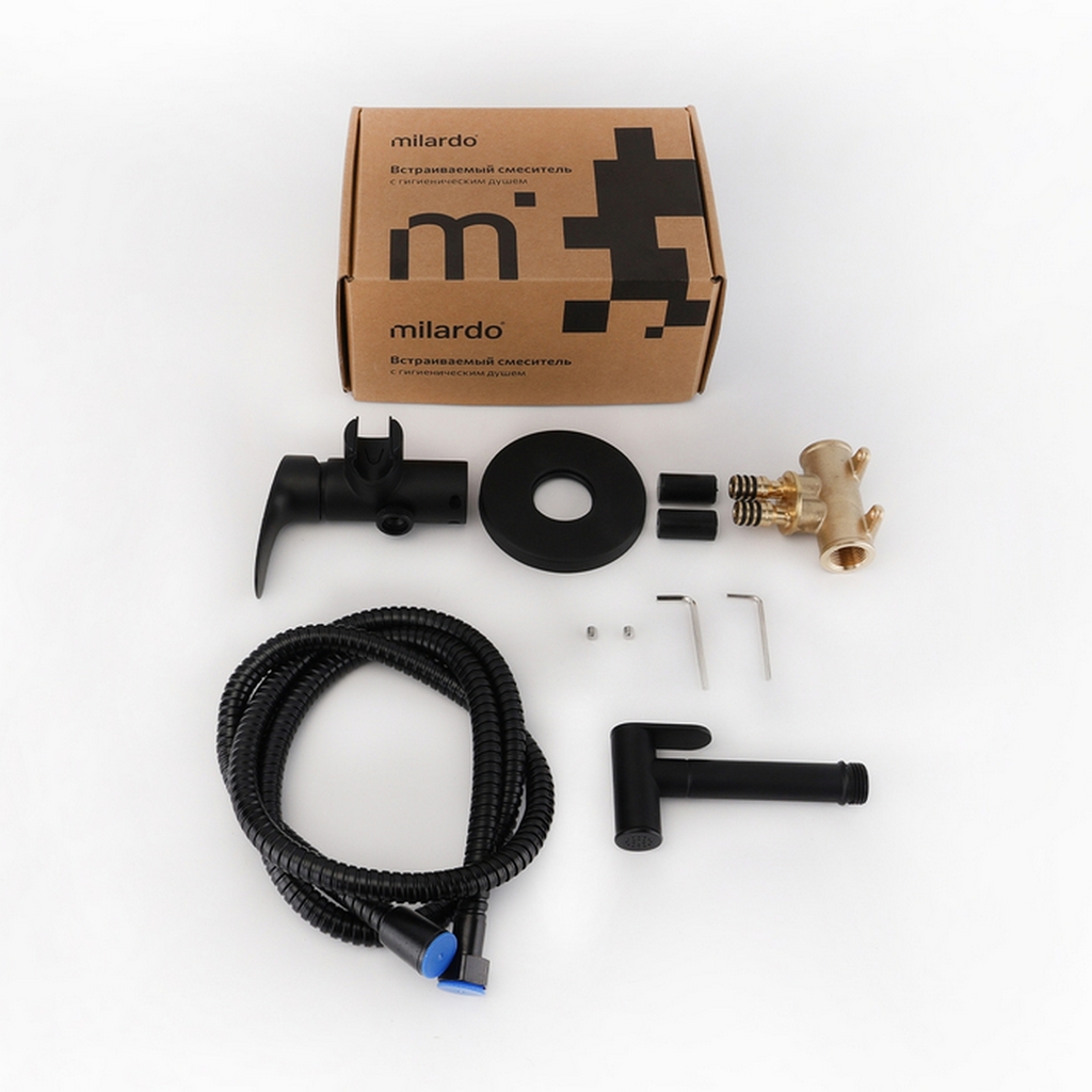 Смеситель с гигиенической лейкой 25к Milardo RORBLR0M08 "Rora" встраиваемый, ЧЕРНЫЙ матовый