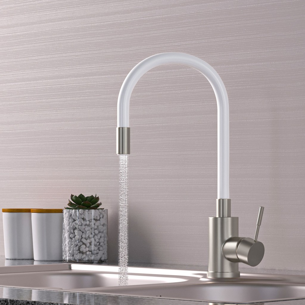Смеситель для кухни 35k MIXLINE MLSS-0325 БЕЛЫЙ гибкий силиконовый излив, п/гайку САТИН
