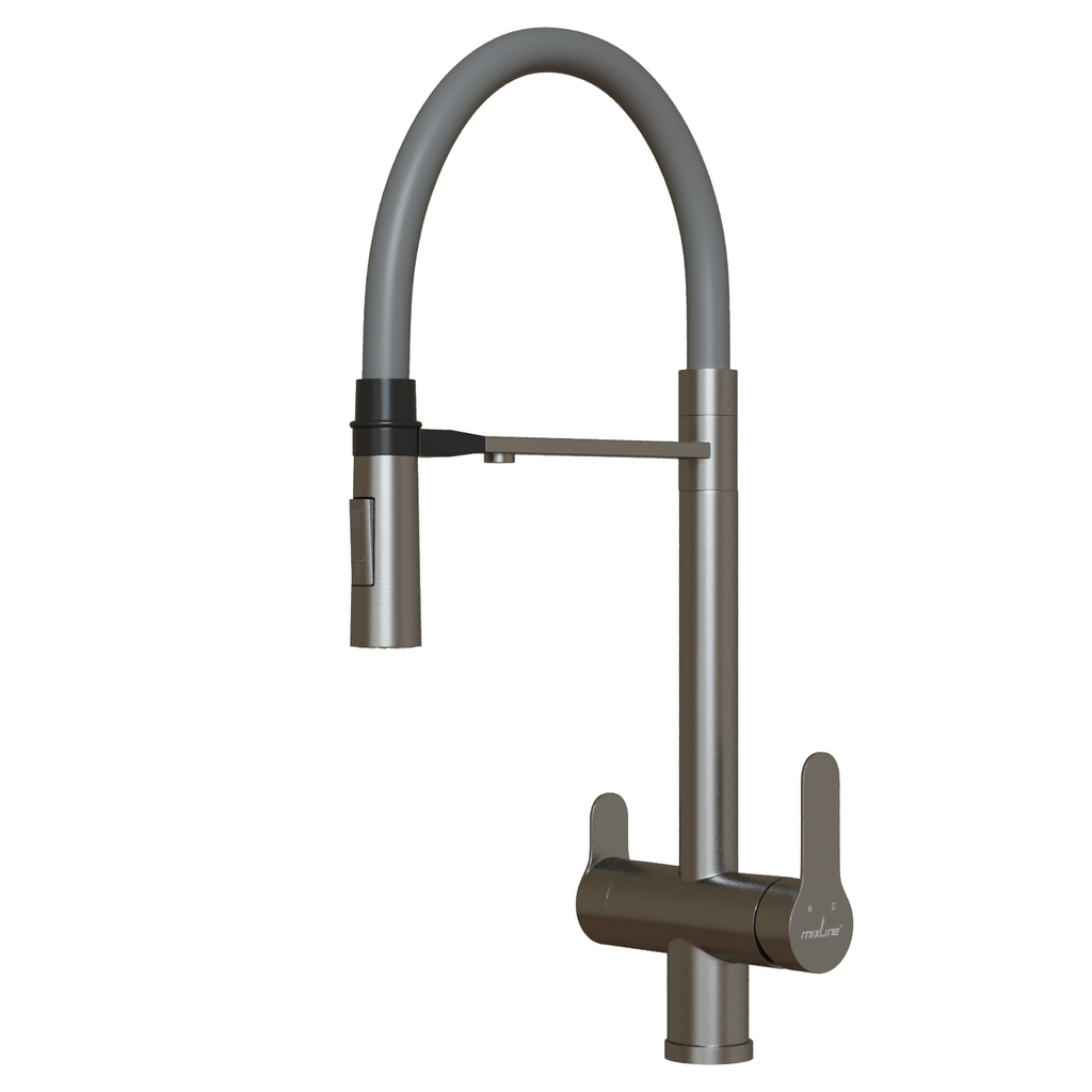 Смеситель для кухни 35k MIXLINE MLSS-0401 СЕРЫЙ гиб. излив магнит, подкл.к фильтру, п/гайку САТИН
