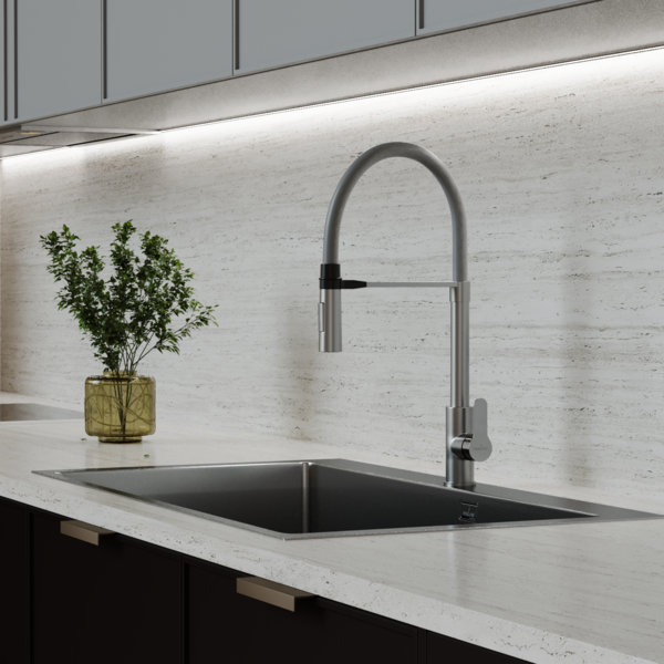 Стильные смесители ТМ Mixline из нержавеющей стали сегодня являются модным трендом современного интерьера на кухне. Они изготовлены из нержавеющей стали марки SUS 304, что обеспечивает их надежность и прочность.