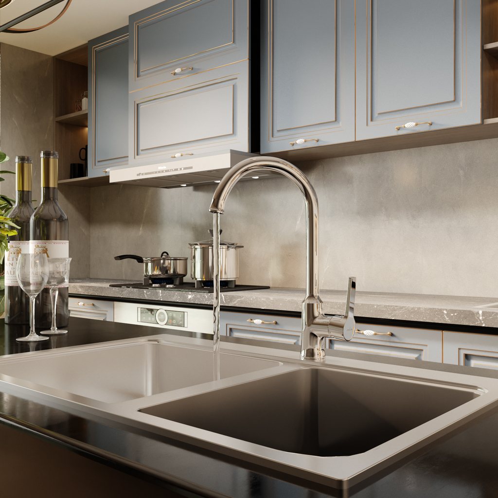 - Плавные обводы: Мягкие, закругленные линии и обтекаемые формы создают визуальный комфорт и делают смеситель элегантным акцентом в пространстве.
