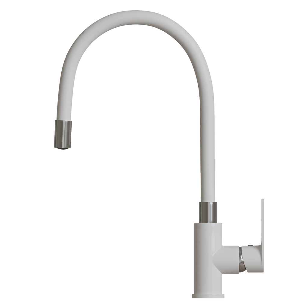 Смеситель для кухни 35к MIXLINE ML33-098 "City White" гибкий излив, б/отв, боковая ручка БЕЛЫЙ/ХРОМ