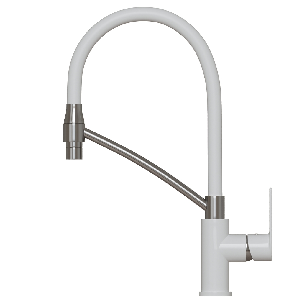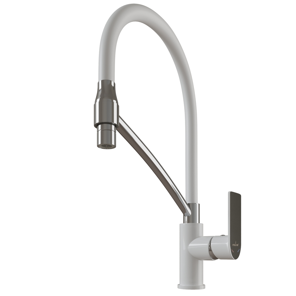 Смеситель для кухни 35k MIXLINE ML33-108 "City White" гибкий излив с фикс. бок.ручка БЕЛЫЙ/ХРОМ