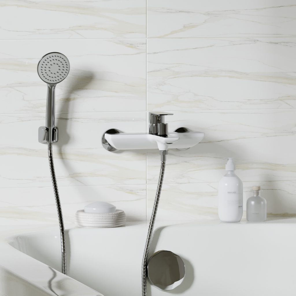 Смеситель для ванны 35k MIXLINE ML33-01 "City White" БЕЛЫЙ/ХРОМ