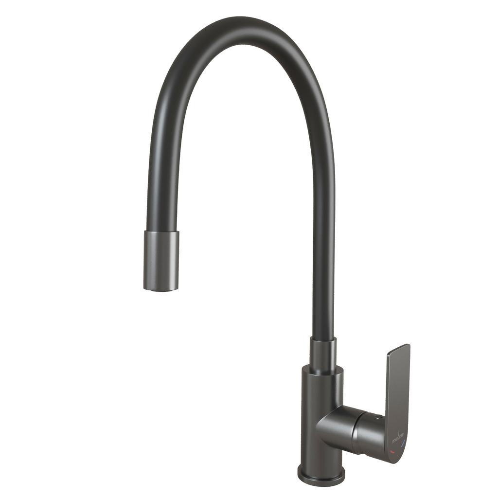 Смеситель для кухни 35к MIXLINE ML33-098GR "City Graphite" гибкий излив боковая ручка б/отв ГРАФИТ