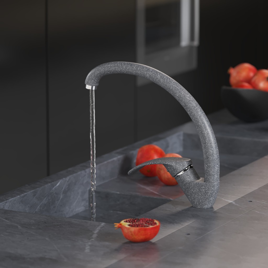 Стильные смесители ТМ Mixline с покрытием под камень сегодня являются модным трендом современного интерьера на кухне. Смесители изготовлены из латуни с покрытием под камень.