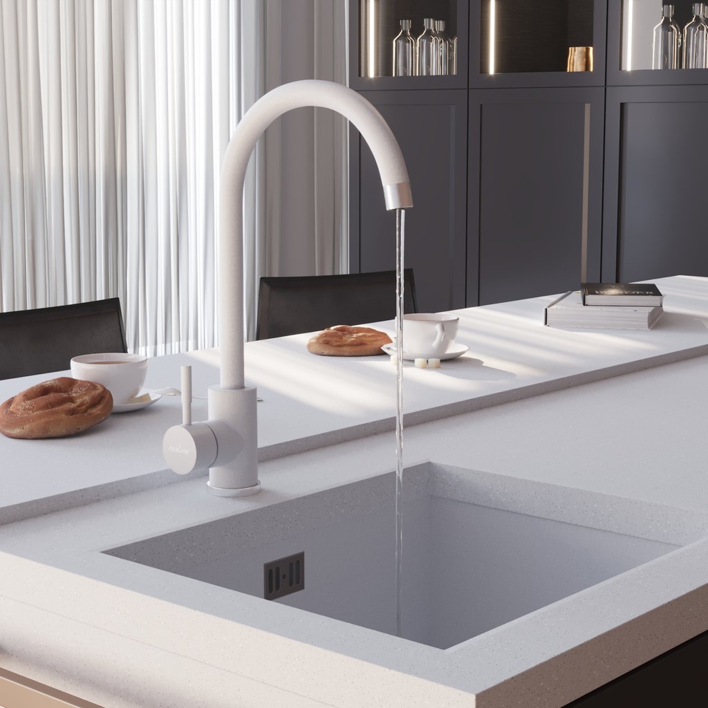 Отличным решением дизайна вашей кухни станет гармоничное сочетание смесителя с покрытием под камень и мойки ТМ Mixline из искусственного мрамора.