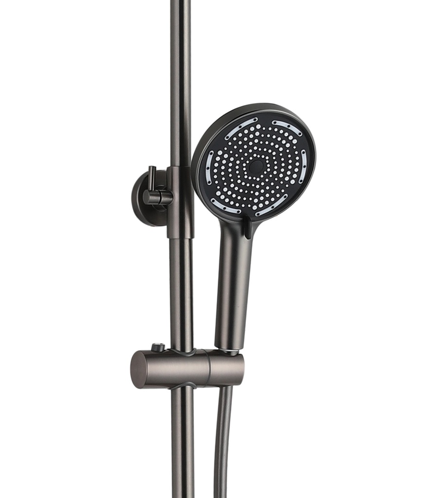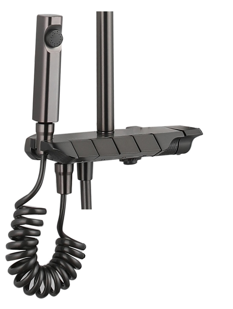 Душевая система 35к ПРОФСАН ПСМ-800-88GA клавиш.упр. лейка "Тропич. душ круг" + гигиен. лейка ГРАФИТ