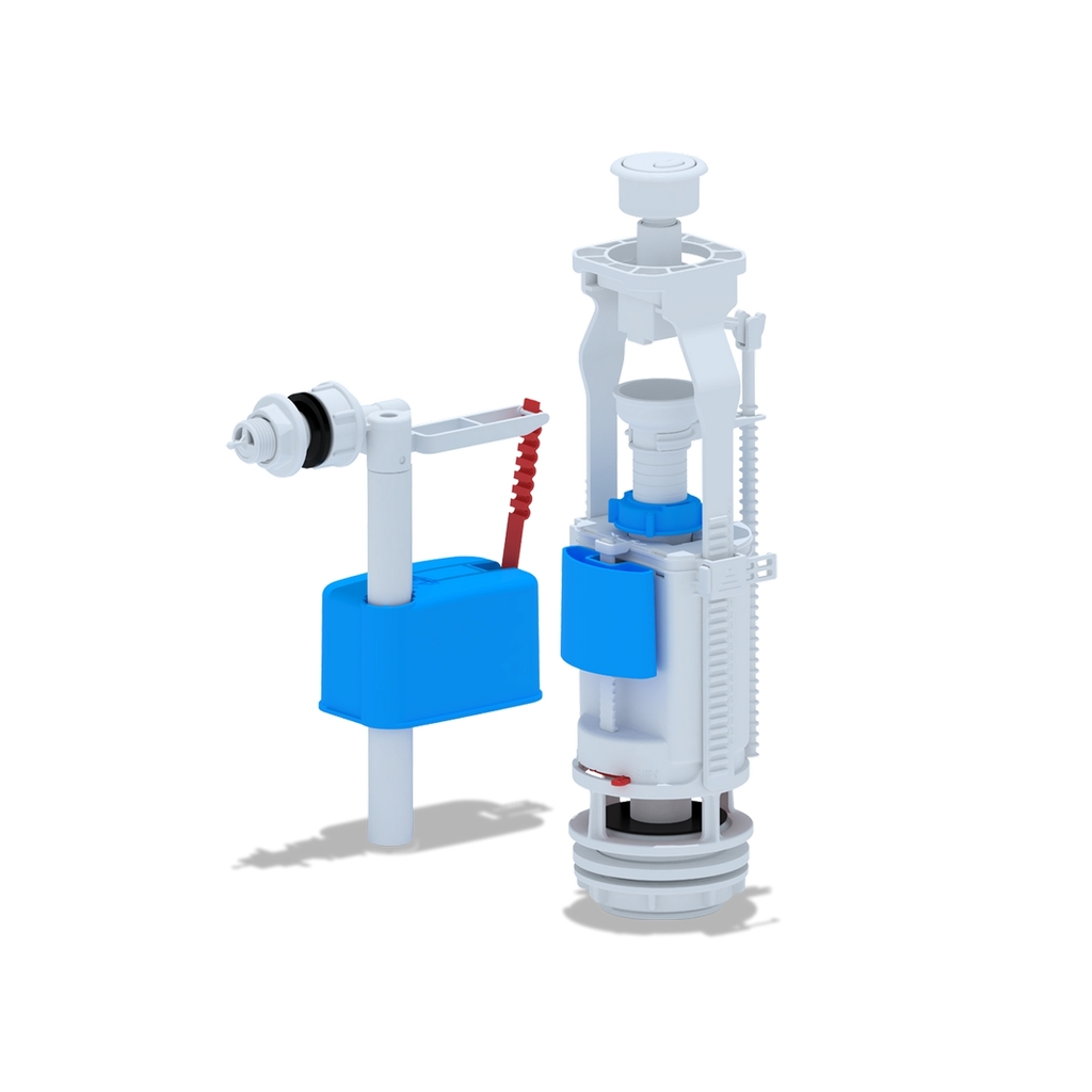 Сливной механизм с белой кнопкой и с двойным режимом слива эконом.