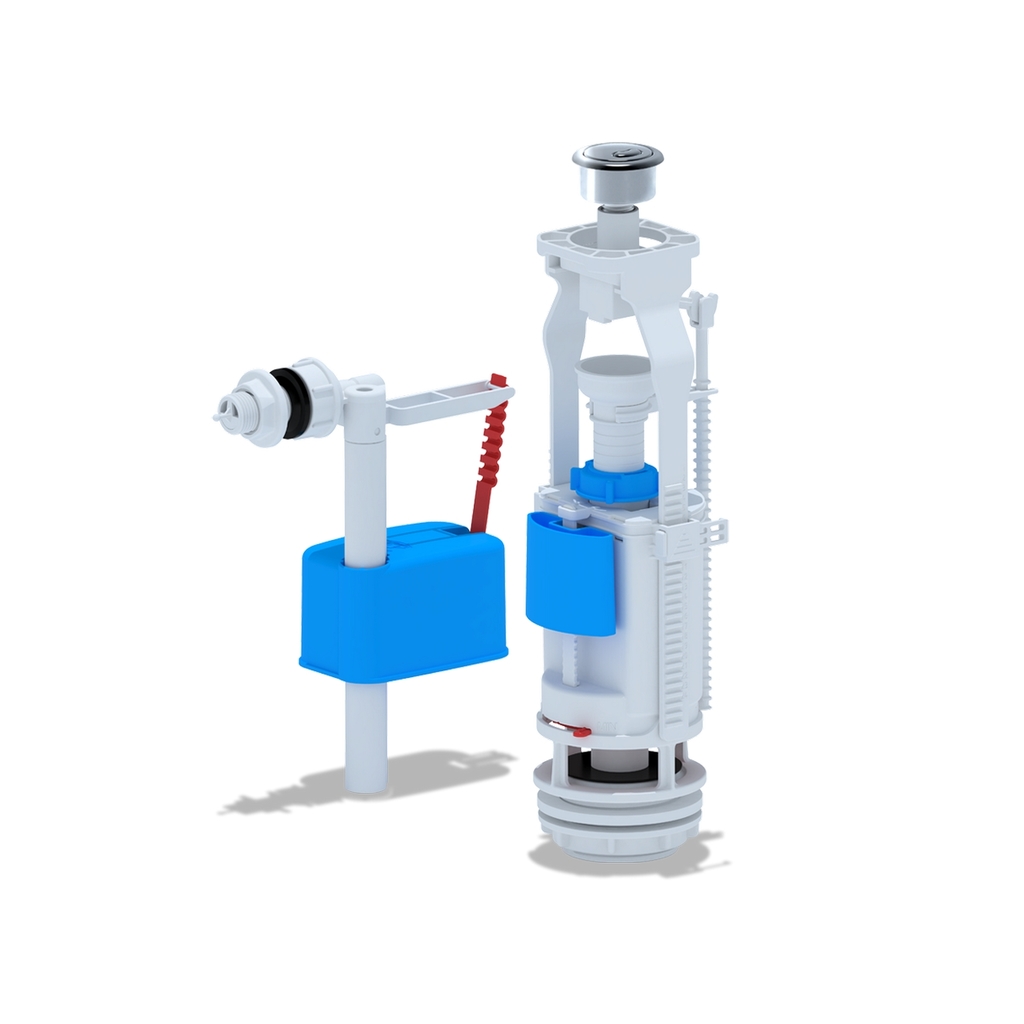 Сливной механизм с хромированной кнопкой и с двойным режимом слива эконом.