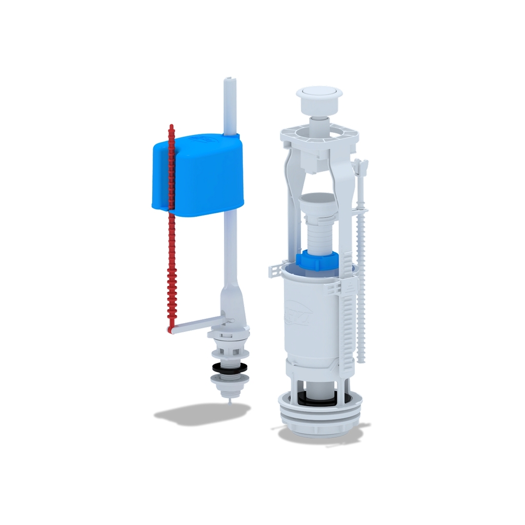 Сливной механизм с белой кнопкой и одним режимом слива эконом можно регулировать по высоте от 290 до 410 мм.