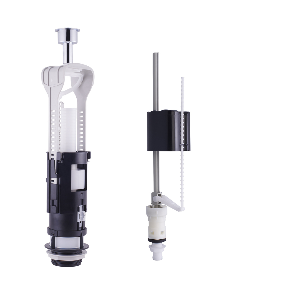 Спускной клапан с системой двойного слива с возможностью регулировки объема половинного и полного слива воды;Универсальная нажимная кнопка, расположенная сверху, фиксирует керамическую крышку бачка;