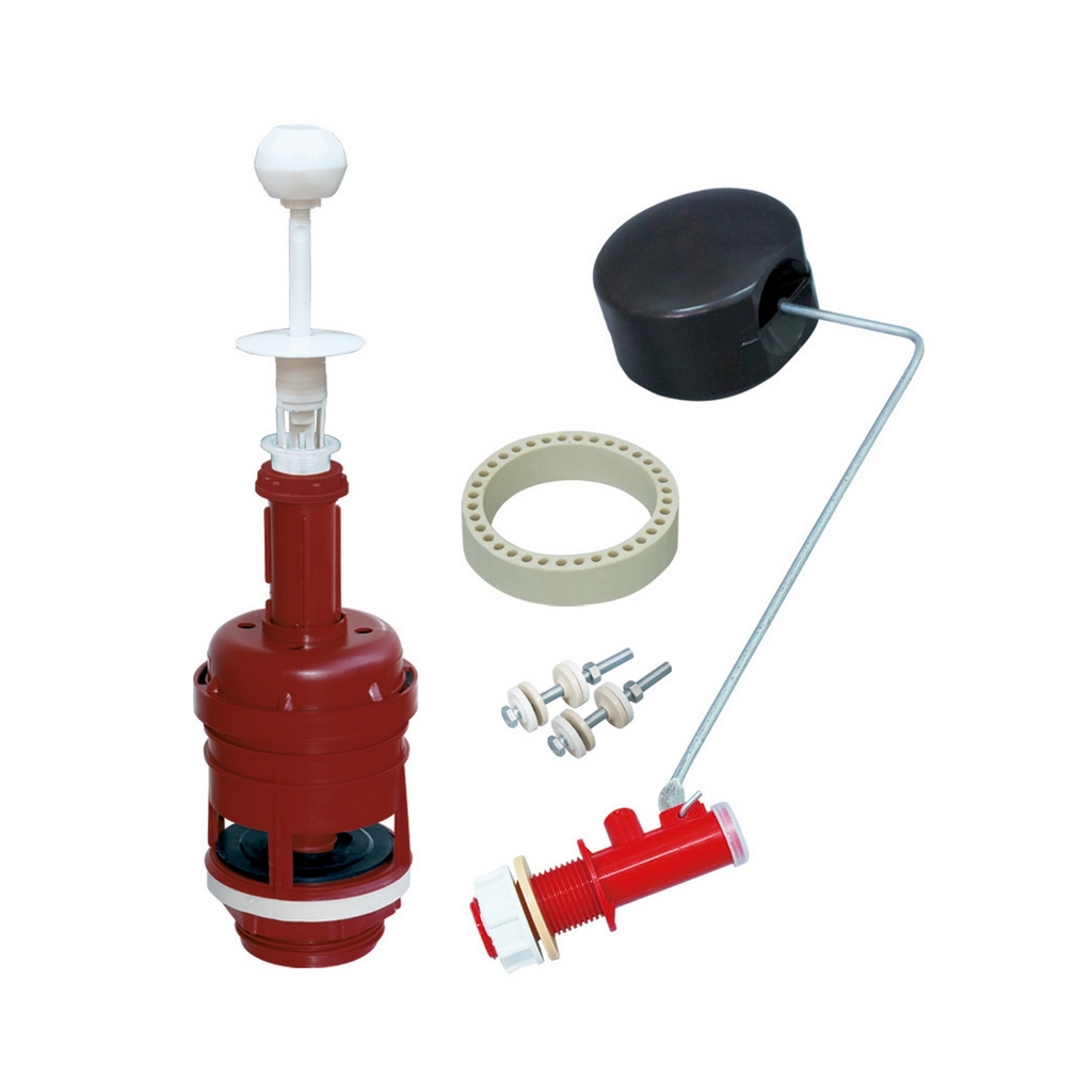 Арматура универсальная АС-1.1 с шаровым клапаном и тягой вверх.Отличительная особенность - универсальность, может применяться как в «низкие» бачки (высота до крышки бачка 270-280 мм), так и в «средние» (высота до крышки бачка до 390 мм), что охватывает основной объем выпускаемого отечественного и импортного санфаянса. Конструкция смывной колонки арматуры, с помощью системы колокола, полностью защищает арматуру от механических повреждений при хранении, установки и эксплуатации. Также ее конструкция позволяет устанавливать уровень перелива, с помощью переливной трубки, от 190 до 270 мм в зависимости от высоты бачка, что полностью исключает возможность пролива воды из бачка.
