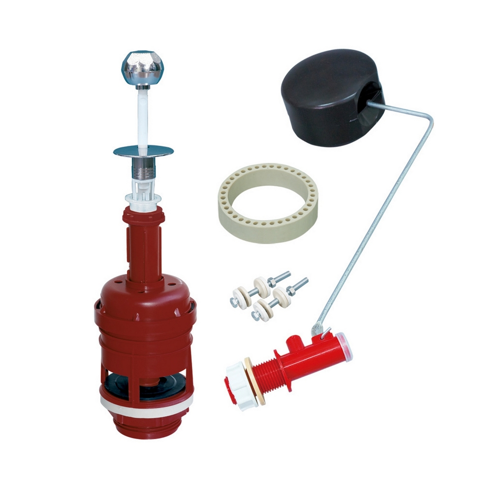 Арматура универсальная АС-1.1 с шаровым клапаном и тягой вверх.Отличительная особенность - универсальность, может применяться как в «низкие» бачки (высота до крышки бачка 270-280 мм), так и в «средние» (высота до крышки бачка до 390 мм), что охватывает основной объем выпускаемого отечественного и импортного санфаянса. Конструкция смывной колонки арматуры, с помощью системы колокола, полностью защищает арматуру от механических повреждений при хранении, установки и эксплуатации. Также ее конструкция позволяет устанавливать уровень перелива, с помощью переливной трубки, от 190 до 270 мм в зависимости от высоты бачка, что полностью исключает возможность пролива воды из бачка.