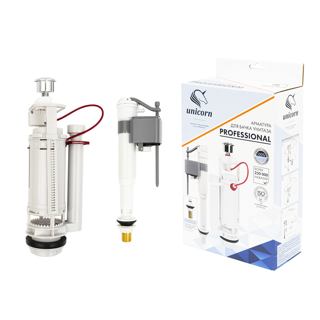 Арматура подходит как для отечественных, так и для импортных моделей бачков унитаза. Арматура регулируется под любую высоту и под любой объем бачка унитаза. Имеет низкую чувствительность к перепадам давления воды. Тихое и быстрое наполнение водой.