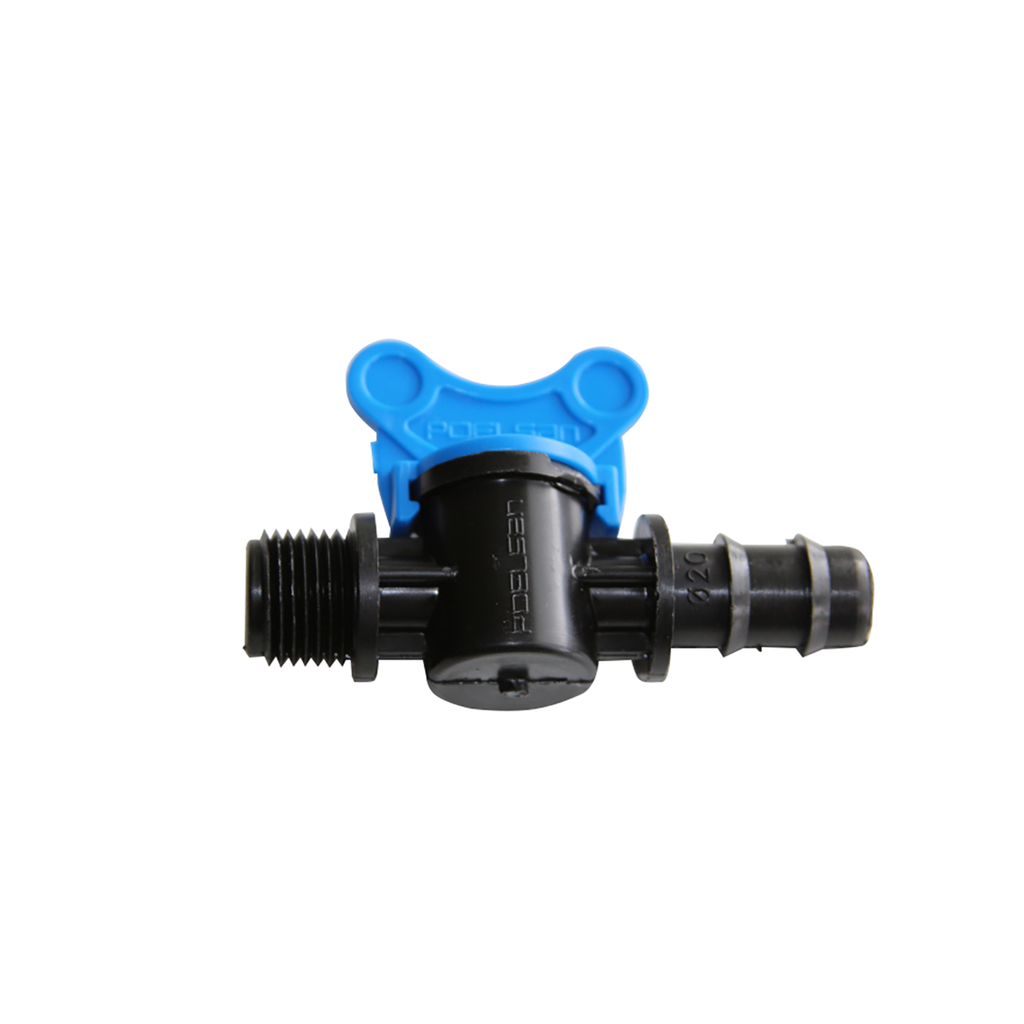 Кран шаровой штуцер - наруж. 20 - 1/2 (мини, под резиновый шланг) ПЭ POELSAN