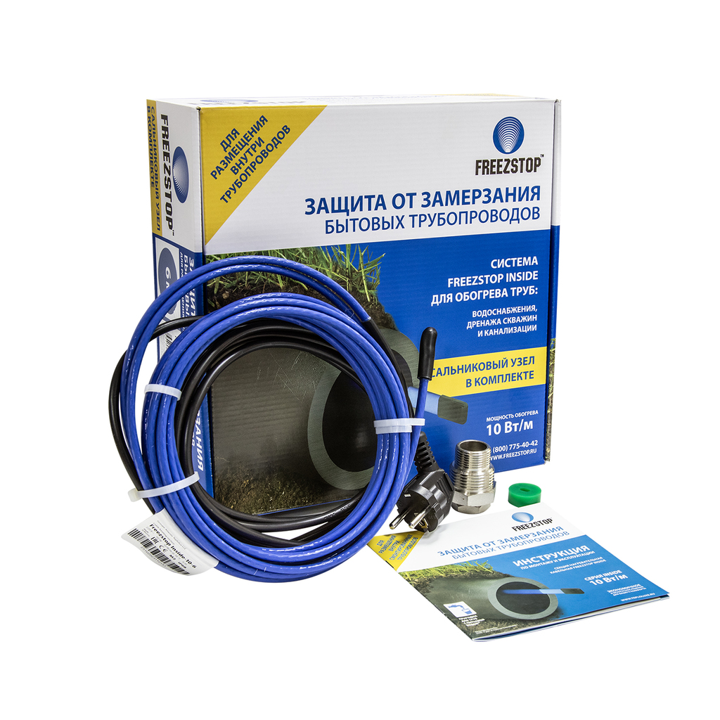 Греющий кабель саморег. для обогрева труб Freezstop Inside (10Вт/м, 8м,монтаж вн.трубы,сальник.узел)