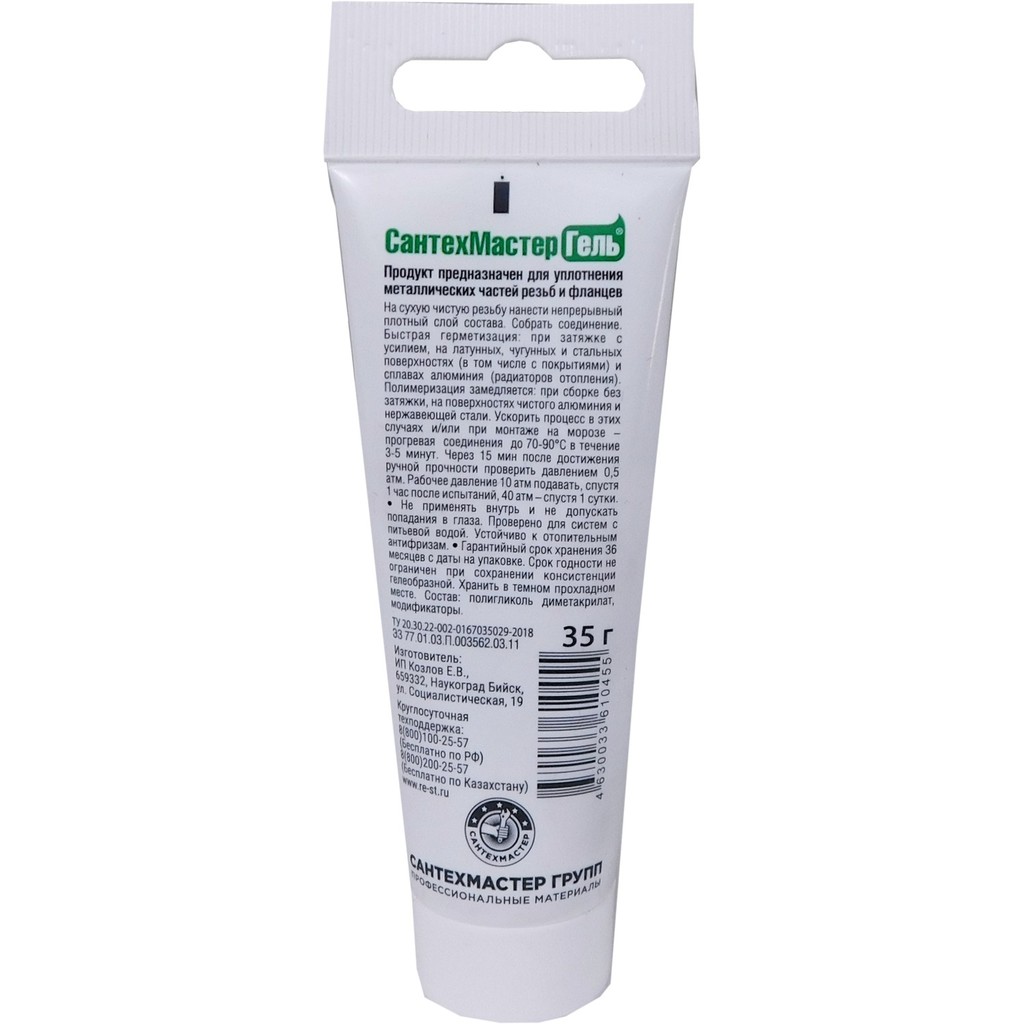 Этот зеленый анаэробный герметик? создает эффективную герметизацию и на сто процентов устойчив к различным агрессивным средам использования: вода, спирт, моторное масло, природный и сжиженный газ, бензин, отопительные антифризы, ацетон, фреон, тормозная и трансмиссионная жидкость. СантехМастер Гель поляризуется в считанные минуты после затяжки резьбы, без необходимости в каких-то особенных условиях температуры окружающей среды или доступа к кислороду.