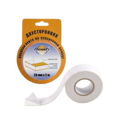 Лента двусторонняя клейкая AVIORA 24 мм*2м белая