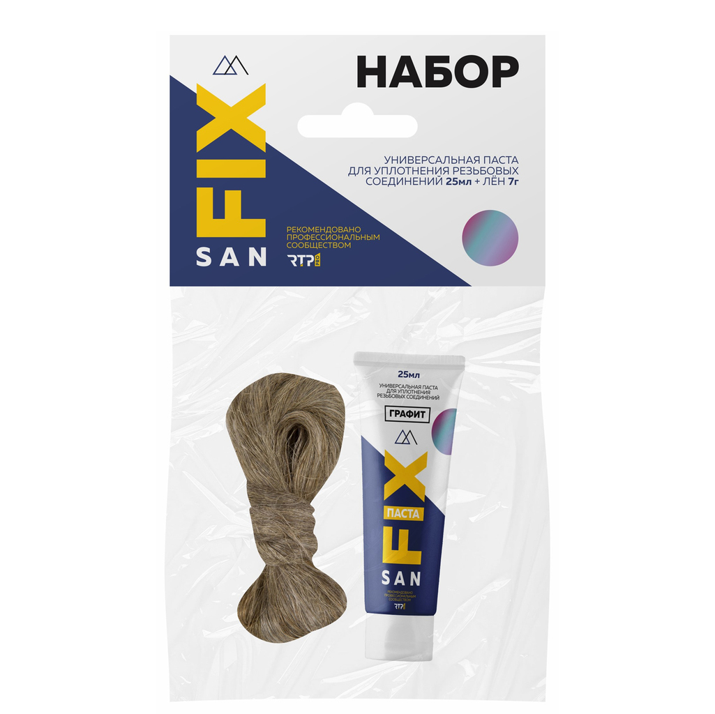 Комплект Уплотнительная паста 25г SANFIX графит + лен 7 г
