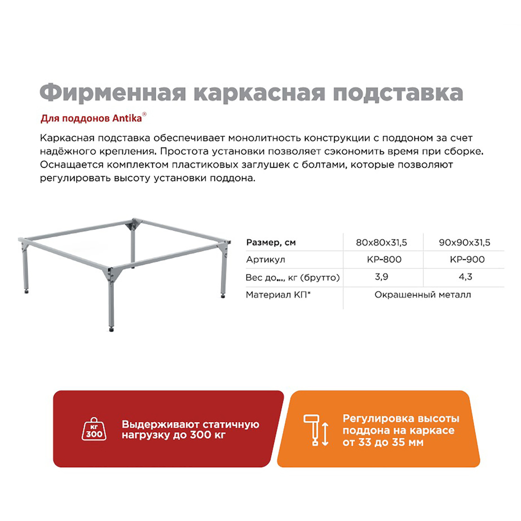 Каркас для душевого поддона Antika 0,8*0,8*0,15 (квадрат) (ВИЗ)