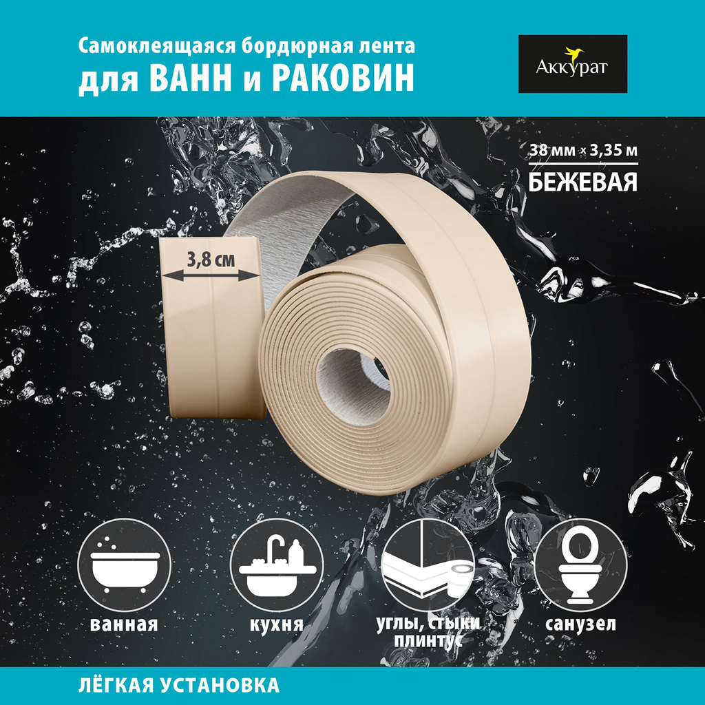 Лента бордюрная самоклеящаяся Аккурат 38мм*3,35м БЕЖЕВАЯ