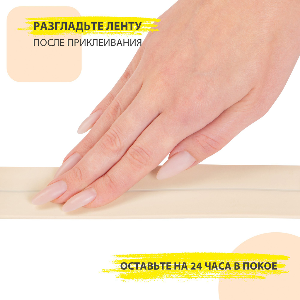 2. Наносите ленту на шов постепенно, снимая защитную пленку по 15-20 см, и сильно прижимая наклеенные участки на 10-15 сек.;