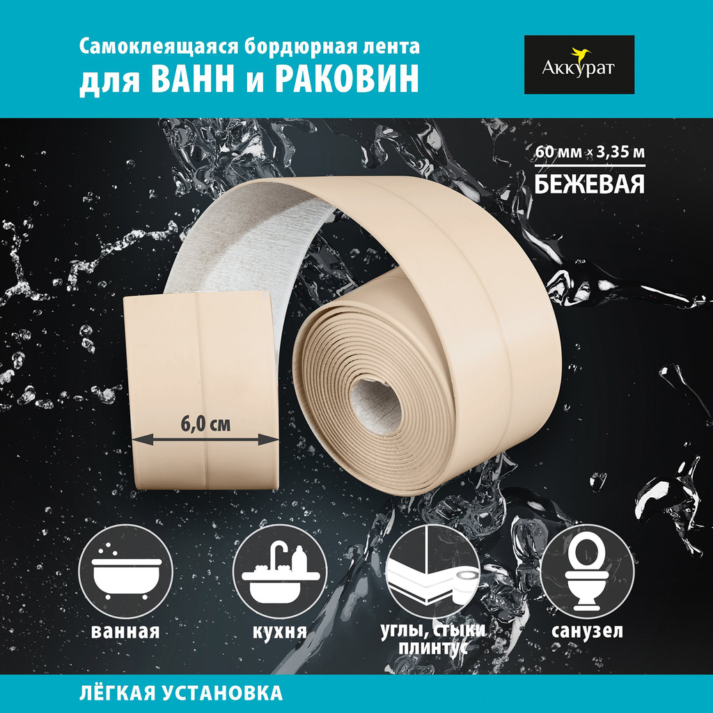 Лента бордюрная самоклеящаяся Аккурат 60мм*3,35м БЕЖЕВАЯ