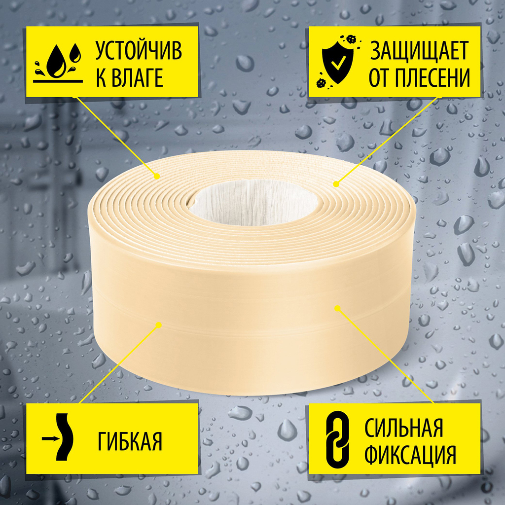 Применяется для эстетичной и герметичной заделки стыков в местах примыкания ванны к стенам и прочих внутренних углов (кухонный фартук-столешница и т.п.).