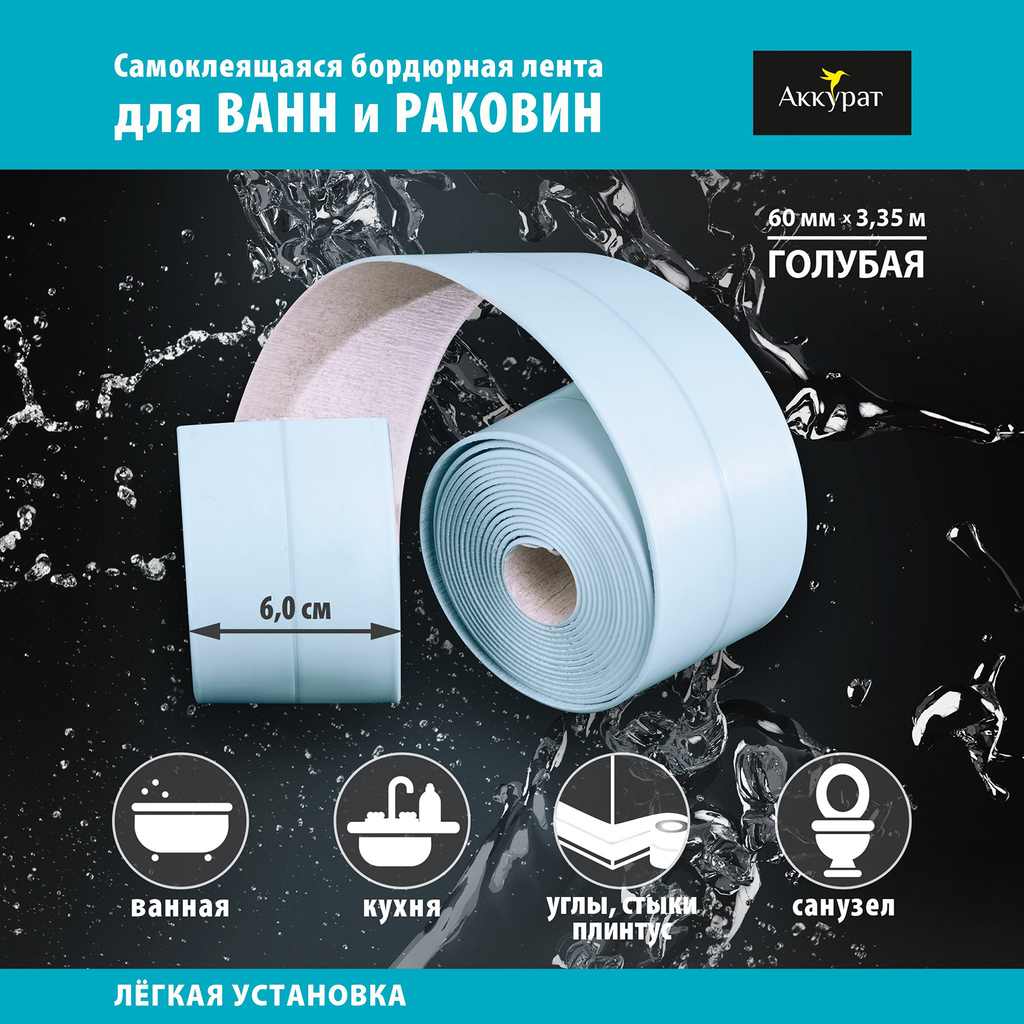 Лента бордюрная самоклеящаяся Аккурат 60мм*3,35м ГОЛУБАЯ