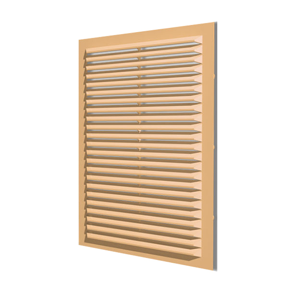 Вентиляционная решетка имеет наклонные жалюзи и оснащена защитной сеткой от насекомых.