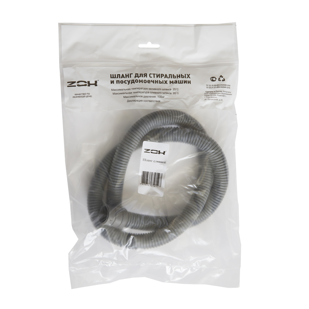 Шланг сливной 1,5 м для ст. машин ZOX индивид. упак.