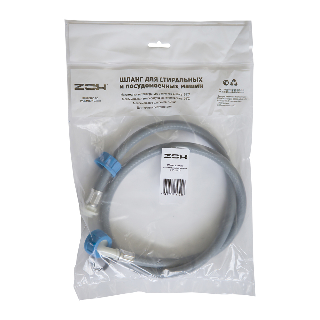 Шланги выполнены из высококачественного ПВХ.Шланги для стиральных и посудомоечных машин ТМ ZOX имеют с двух сторон накидные гайки с внутренней резьбой. Концевые присоединительные элементы стандартного размера 3/4".