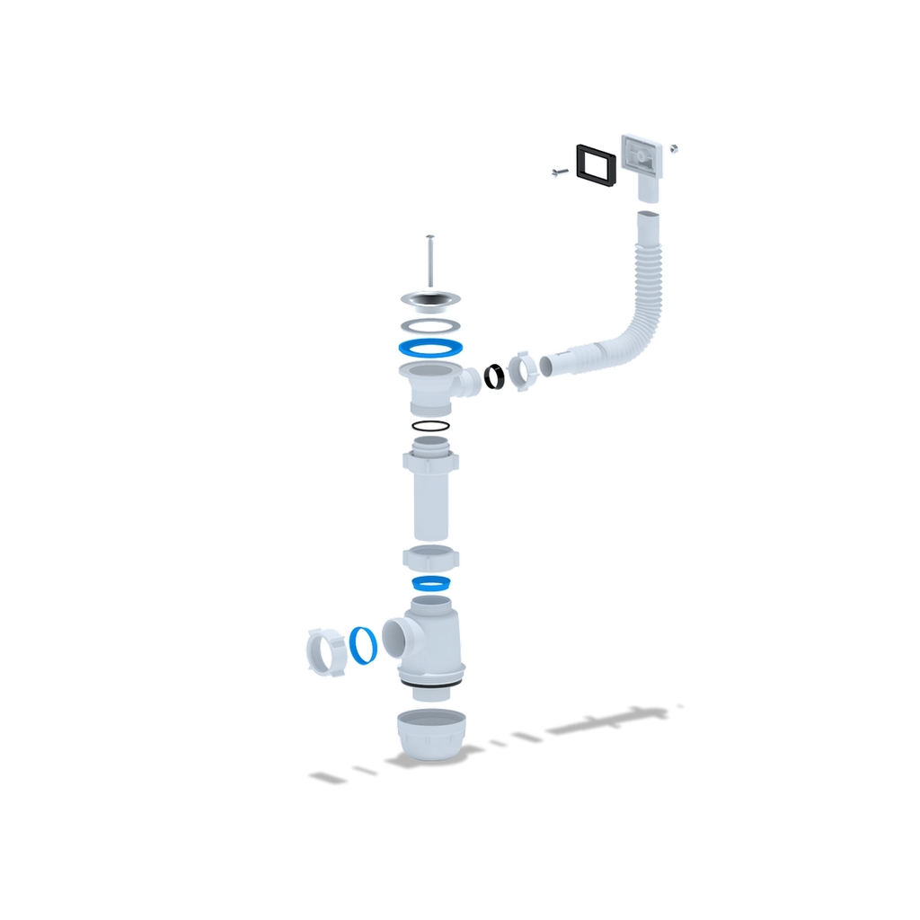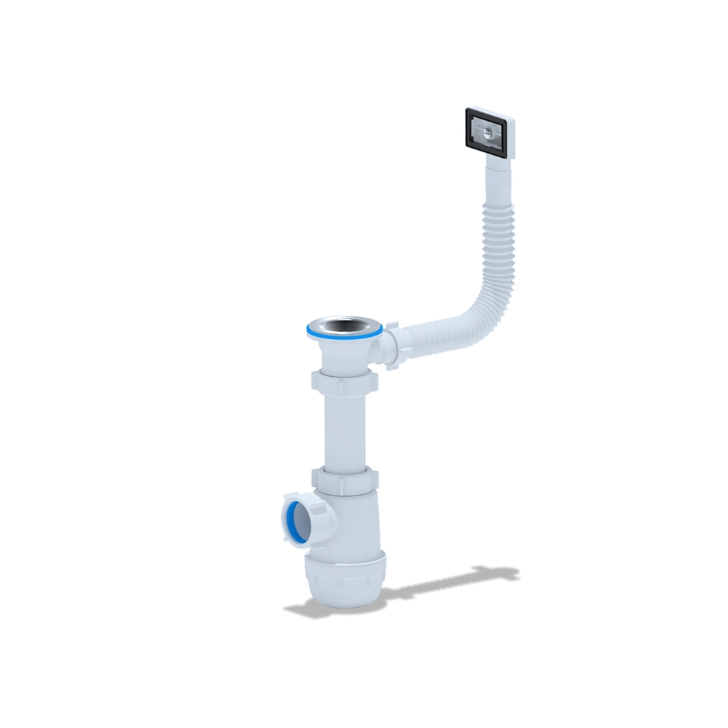 Комплектация: сифон с выпуском и прямоугольным гибким переливом, упаковка.