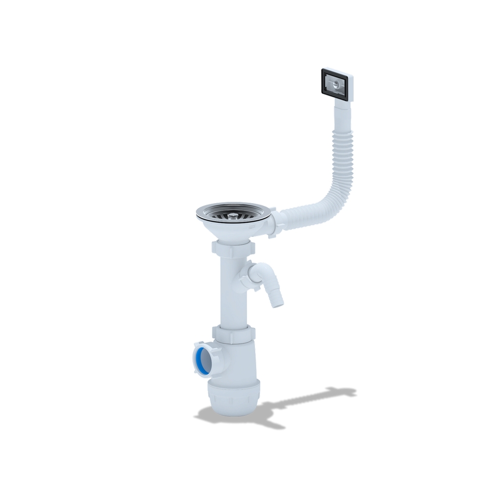 Сифон для кухонных моек с диаметром сливного отверстия 90мм, бутылочного типа с увеличенным корпусом, разборным выпуском и нержавеющей решеткой, с отводом для подключения бытовой техники. С гибким прямоугольным переливом для моек из нержавеющей стали. Выход для подключения к канализации 40мм.Форма сифона позволяет поддерживать хорошую пропускную способность слива сточной воды, выполняя свою главную функцию - формирование гидрозатвора для отсечения неприятных запахов из канализации.
