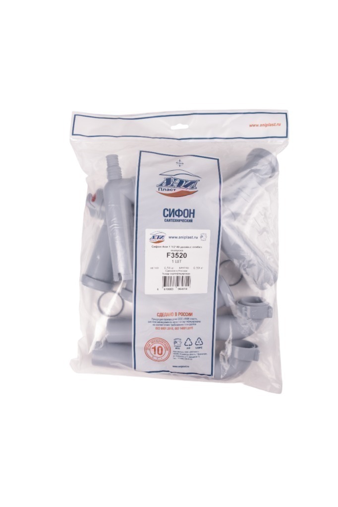 Сифон 1 1/2*40 БЕЗ ВЫПУСКА Ani двойной,с носиком, F3520 АНИ пласт