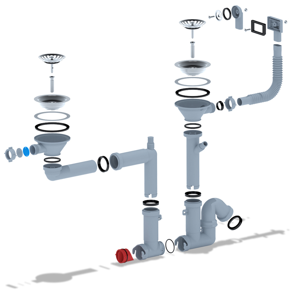 Двойная смещённая конструкция для эффективного слива с обеих чаш и экономии пространства.