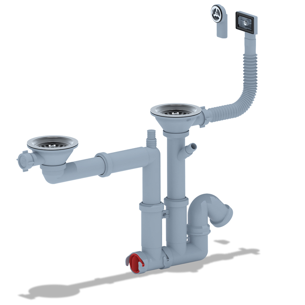 Сифон для мойки АНИ Пласт F серия F7500S — это двойной смещённый сифон с гибким переливом и отводом для стиральной машины. Диаметр подключения — 3 1/2 дюйма, диаметр выпуска — 40 мм. Смещённая конструкция экономит место, гибкий перелив защищает от переполнения, а отвод для бытовой техники делает эксплуатацию максимально удобной. Прочные материалы гарантируют долгий срок службы и устойчивость к воздействию бытовой химии.Преимущества сифона для мойки АНИ Пласт F серия F7500S:
