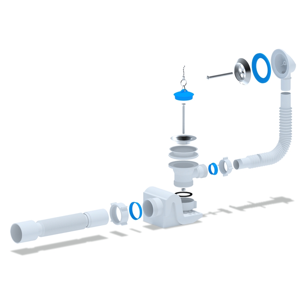Форма сифона позволяет поддерживать хорошую пропускную способность слива сточной воды, выполняя свою главную функцию - формирование гидрозатвора для отсечения неприятных запахов из канализации. Из всех современных аналогов это один из самых низких по высоте сифонов, что позволяет укомплектовать им практически любую ванну, душевую кабину или поддон.