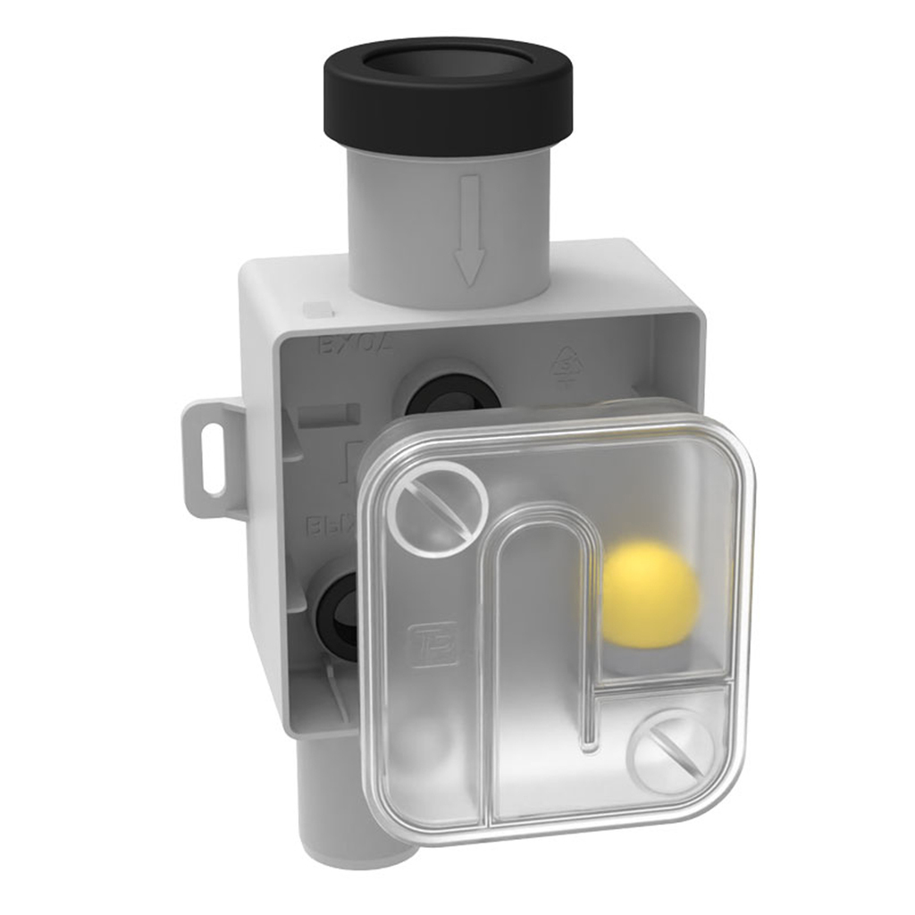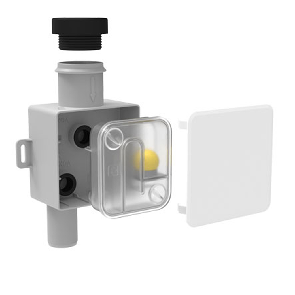 Сифон применяется для отвода конденсата в канализацию в системах кондиционирования. Сифон оснащен механическим запирающим устройством, не пропускающим запах из канализации при высыхании воды в гидрозатворе.При сливе дренажа от кондиционеров вода проходит через съемную кассету, герметично соединенную с корпусом с помощью эластичных уплотнительных прокладок. Кассета имеет гидрозатвор высотой 50 мм и механическое запахозапирающее устройство в виде шарика, который при высыхании гидрозатвора не пропускает запахи из канализации.
