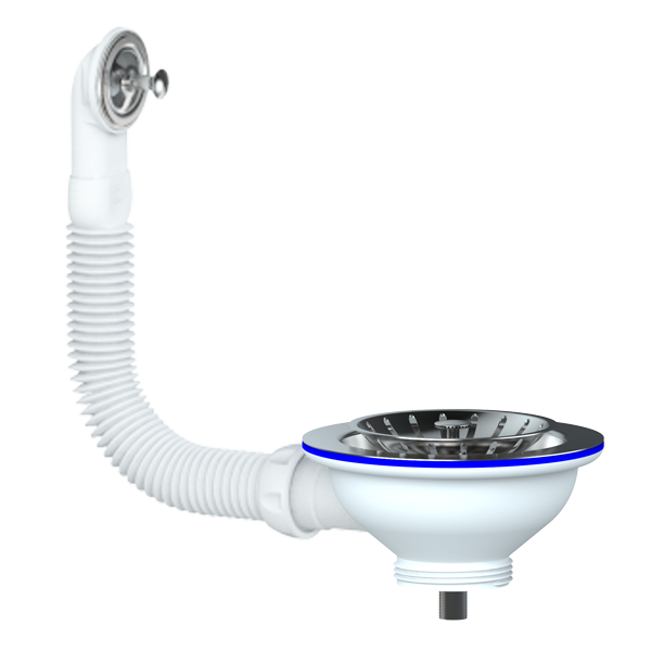 Перелив д/мойки 3 1/2" (112 мм) с нерж. сеткой круглый E156 (винт, шток, ручка-латунь) UNICORN
