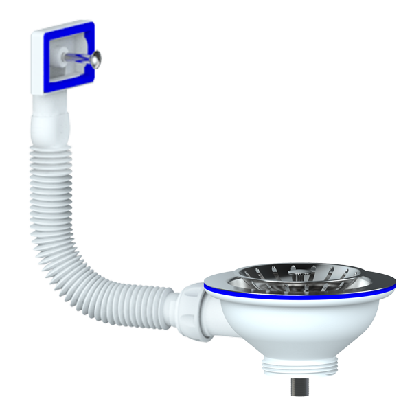 Перелив д/мойки 3 1/2" (112 мм) с нерж. сеткой прямоуг. E155 (винт, шток, ручка-латунь) UNICORN